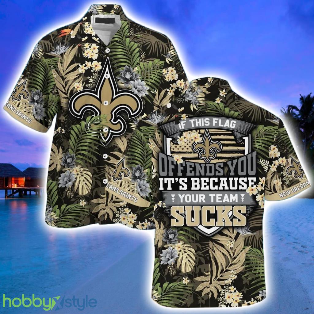 New Orleans Saints Hawaiian Shirt With Tropical Pattern – If This Flag Offends You It’s Because You Team Sucks Details: